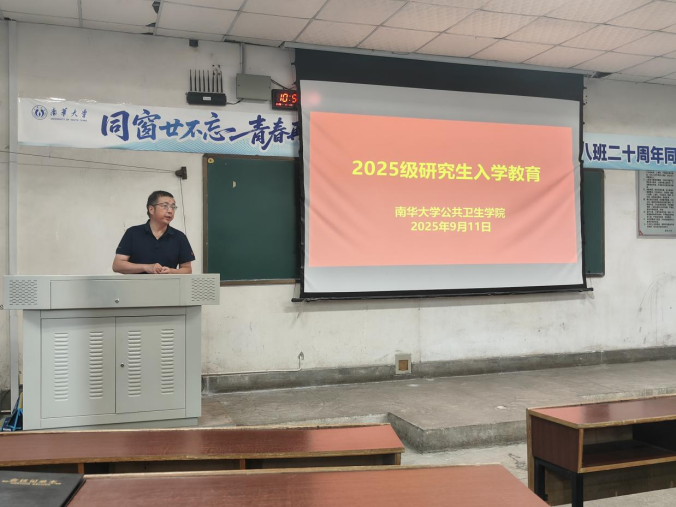秋阳正好迎新季,公卫启航正当时。为强化研究生全过程管理,深化学术道德和诚信教育,严肃研究生学习生活纪律,9月11日,PA视讯平台,PA视讯,PA视讯官网2025级研究生入学教育在形态楼201教室举行,学院首届公共卫生与预防医学学科博士研究生一并参与。副院长杨慧仙、教学办主任于军晖和研究生辅导员吴彦玲共同参会,会议由于军晖主持。