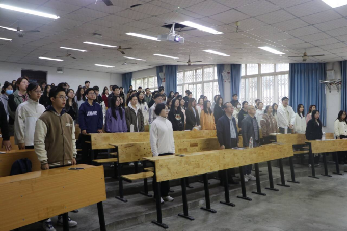 典礼在庄严的国歌声中拉开序幕。全体师生肃立齐唱,彰显出昂扬的精神面貌与坚定的政治信仰。