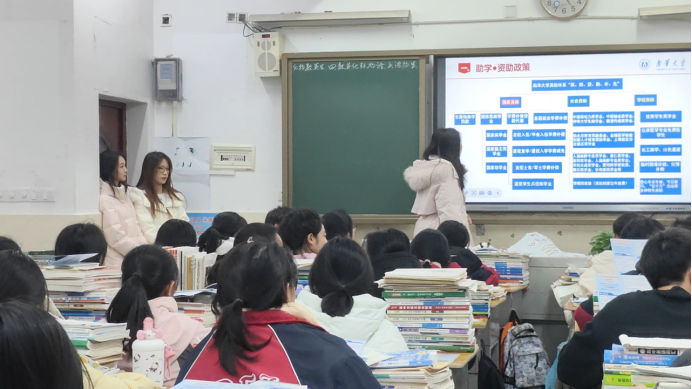 宣讲前,团队进行了为期一周的精心筹备。在学院资助专干蒋剑红老师的指导下,成员们系统学习资助政策,并结合高三学生实际需求,反复打磨内容,开展多次试讲。团队还准备了详实的PPT、宣传手册与问卷,并融入南华学子受助成才的真实案例,以身边故事增强感染力。从联系母校到设计互动,每一步都周密安排,力求把政策讲清、将关怀送达,为学弟学妹注入安心与动力。