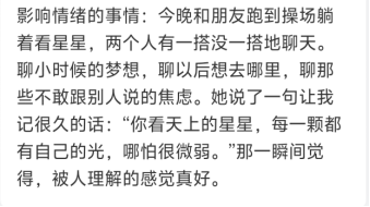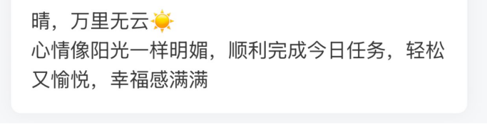 打卡过程中,同学们坦诚分享着自己的情绪百态:有人倾诉学业重压下的焦虑,有人记录情感纷扰中的迷茫,也有人写下突遇暴雨时的失落;而那些藏在日常里的细碎美好,也在打卡中被一一珍藏——一口暖心美食的治愈,好友相聚的开怀欢笑,沉浸热爱之事的畅快,心无挂碍的坦荡舒心,都成为情绪里的光亮,温暖又动人。