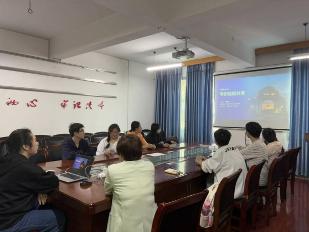 随后举办的考研经验分享会上,张晗睿、黄雨欣、杨梦琳三位同学结合各自备考经历,围绕择校策略、科目复习与时间规划展开交流。张晗睿从院校选择入手,建议同学们综合评估自身实力与专业匹配度,合理确定目标层次。黄雨欣着重分享了英语与专业课的复习方法,提出英语备考应注重词汇积累与真题研读,专业课复习需以构建知识框架为基础、以真题训练为抓手查漏补缺。杨梦琳系统梳理了备考周期的时间安排,将全过程划分为基础夯实、强化提升与冲刺模拟三个阶段,并就各阶段的学习重点与节奏把控作了详细说明。