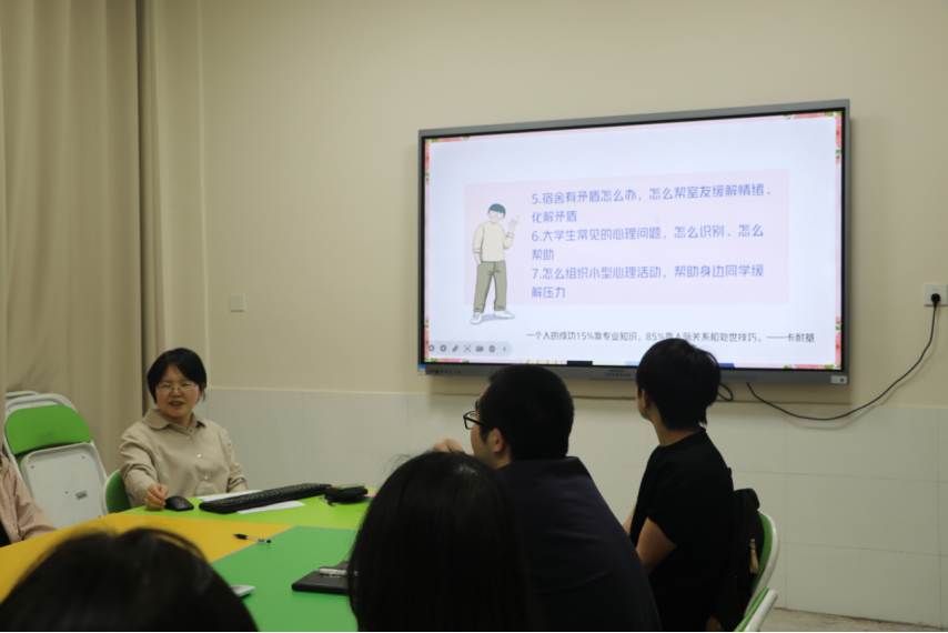 活动伊始,蒋剑红老师围绕心理委员与寝室长的工作职责,引导同学们深入探讨“该做什么、不该做什么”“怎么帮室友缓解情绪、化解矛盾”等问题。同学们结合日常工作经历踊跃发言,在交流中互学互鉴、凝聚共识。