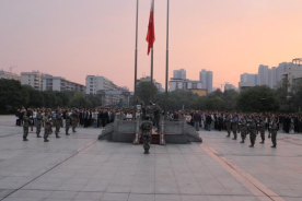 伴随着雄壮的国歌声,国旗班队员迈着整齐矫健的步伐护送国旗入场,全体师生肃立注目,高唱国歌,目光追随着五星红旗冉冉升起,心中涌动着对祖国的无限热爱与对使命的坚定信念。