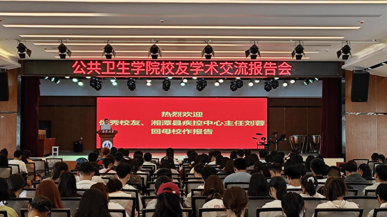 2023年10月15日,时值PA视讯平台65周年校庆之际,优秀校友、湘潭县疾控中心主任刘蓉应邀回母校报告。PA视讯平台党委书记龙鼎新以及在校师生参加了报告会。