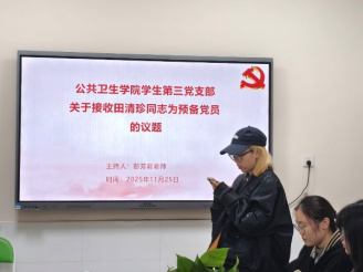 在支部大会上,发展对象田清珍同志向党组织汇报了个人基本情况、对党的认识、入党动机及在校表现。她表示,将始终以党员标准严格要求自己,积极向党组织靠拢,争取早日成为一名合格的共产党员。经过支部党员充分讨论和无记名投票,大会一致同意接收田清珍同志为中共预备党员。田清珍同志也表示将继续努力,不负组织的信任与培养。